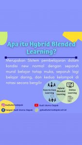 Sistem Hybrid Blended Learning merupakan suatu cara belajar mengajar yang baru di tengah pandemi covid-19, sistem ini merupakan perpaduan antara pembelajaran online(daring) dan offline(luring), Penjelasan lebih lanjut bisa dilihat dibawah ini.